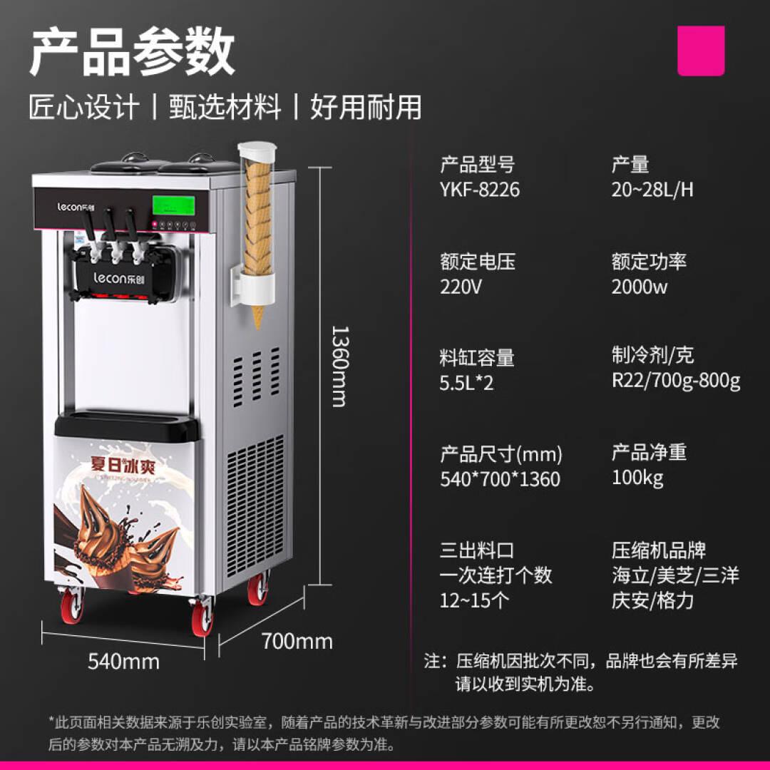 乐创(lecon)冰淇淋机商用雪糕机软冰激凌机全自动甜筒机圣代机不锈钢立式 商用冰淇淋机 YKF-8226