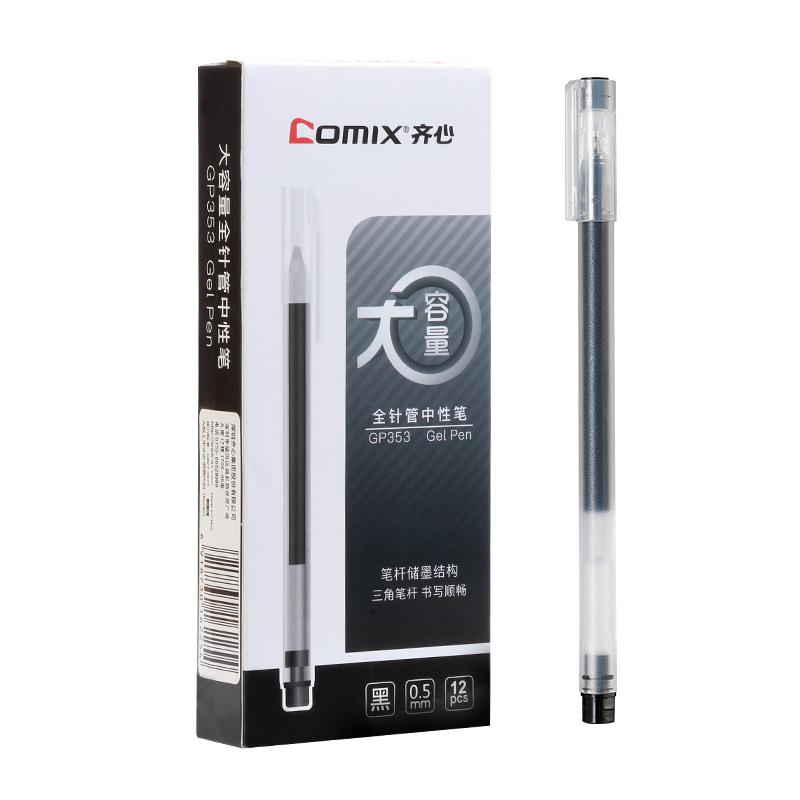 > 齐心 GP353 全针管大容量中性笔 0.5mm 黑色 12个装