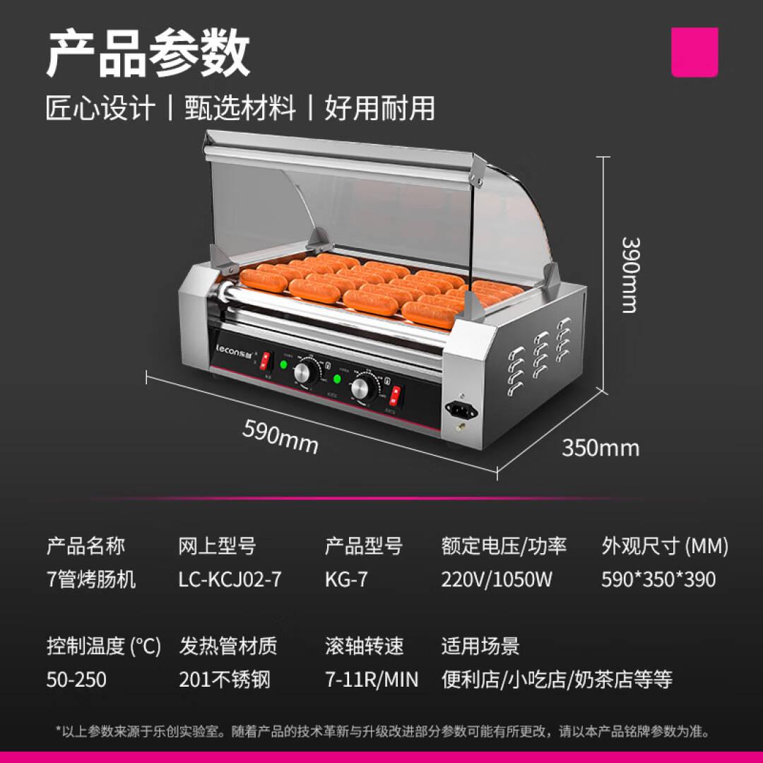 乐创(lecon)烤肠机商用热狗机商用小吃店全自动台式烤火腿肠机7管(2024年升级高端款)LC-KCJ02-7