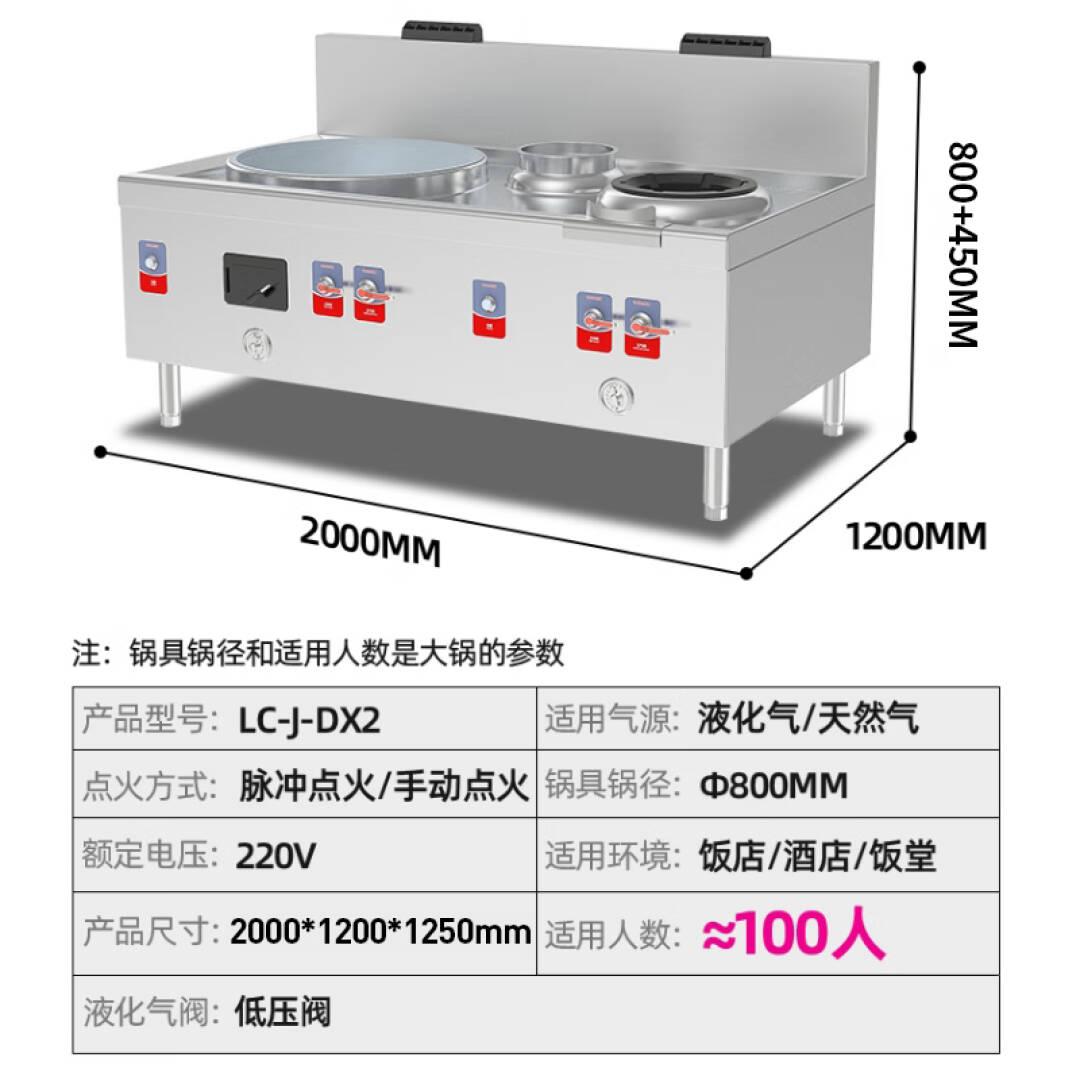 乐创(Lecon)商用燃气组合灶(大锅+小炒) 大锅锅径800 天然气/液化气可选企业炒灶 LC-J-DX2 单位:台