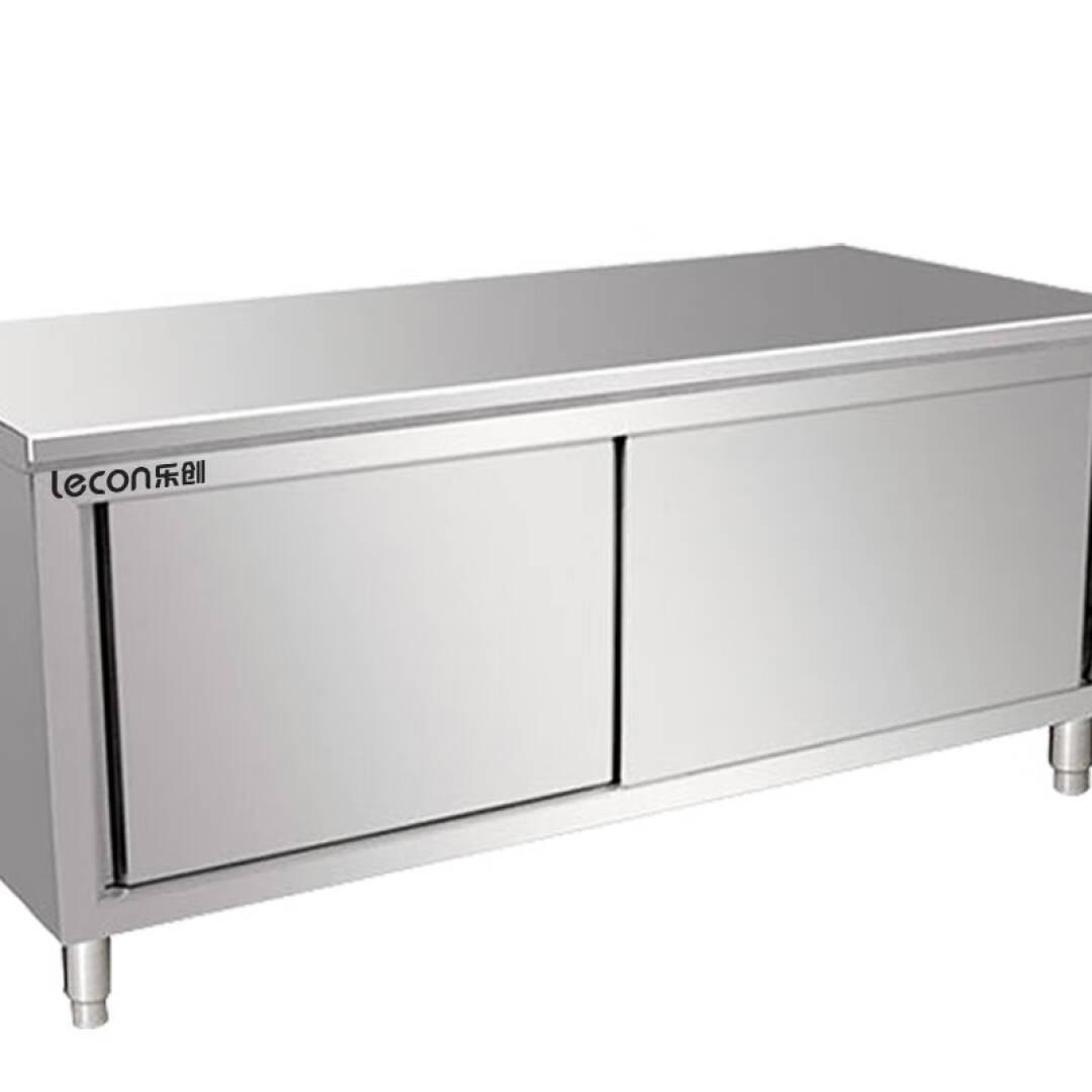 乐创 lecon 商用双拉门工作台 304型1.8*0.8米厨房操作台面不锈钢储物柜 LC-J-BG01 单位:台