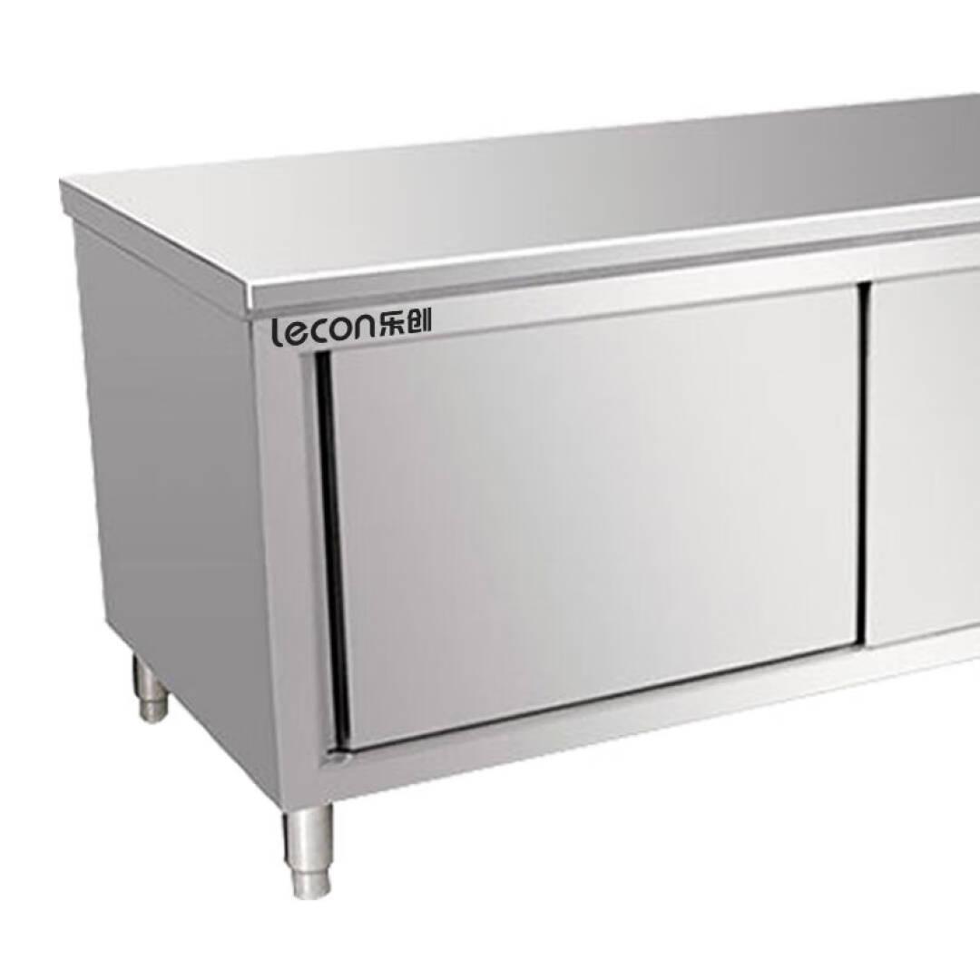 乐创 lecon 商用 双拉门工作台 304型2.2*1.0米厨房操作台面不锈钢储物柜 LC-J-BG01 单位:台