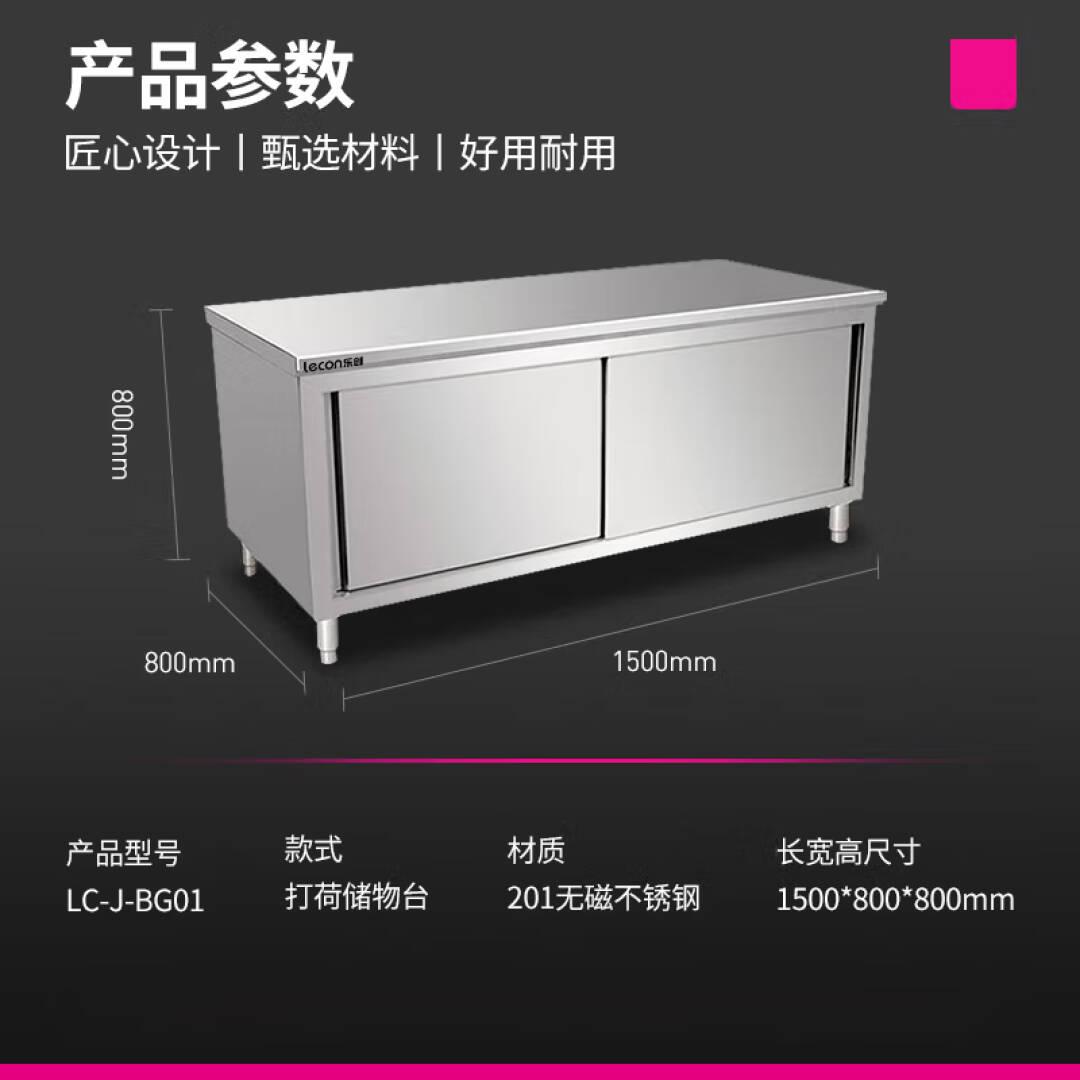 乐创 lecon 商用单拉门工作台 201型1.5*0.8米厨房操作台面不锈钢储物柜 LC-J-BG01 单位:台