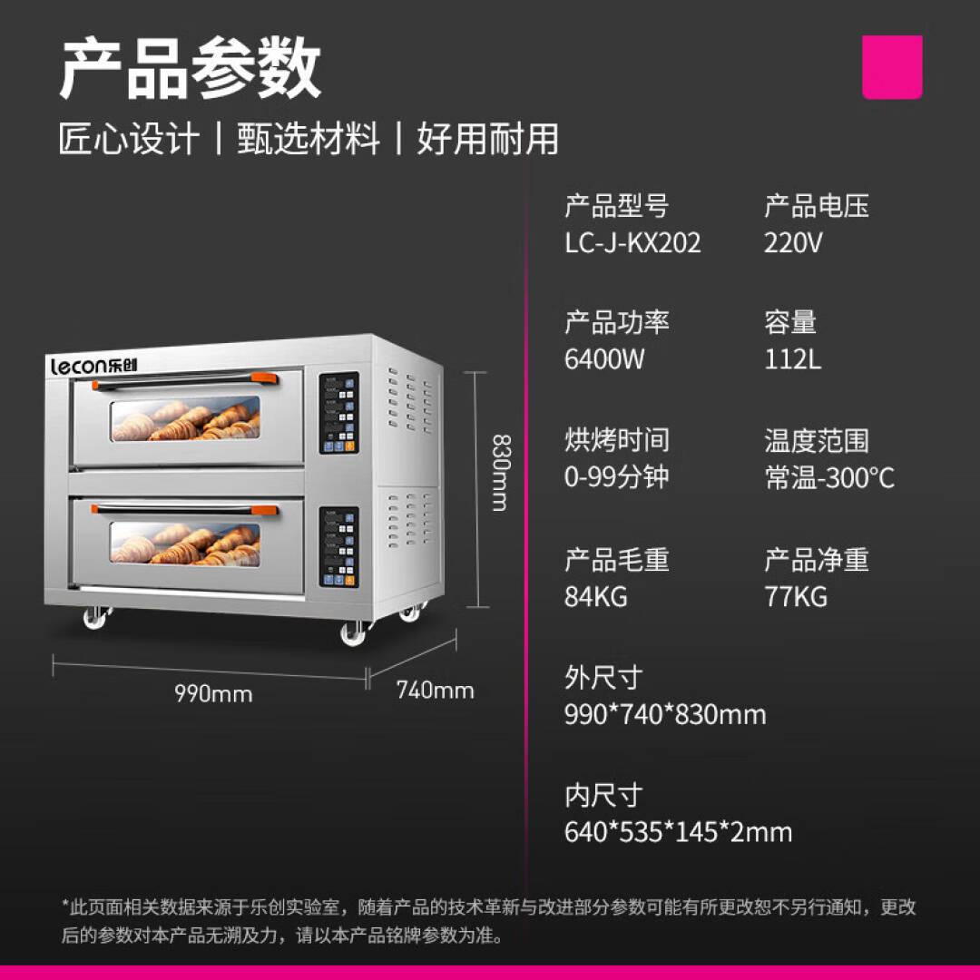 乐创(lecon)商用电烤箱 二层二盘披萨蛋糕烘焙电热烤箱 LC-J-KX202 单位:台