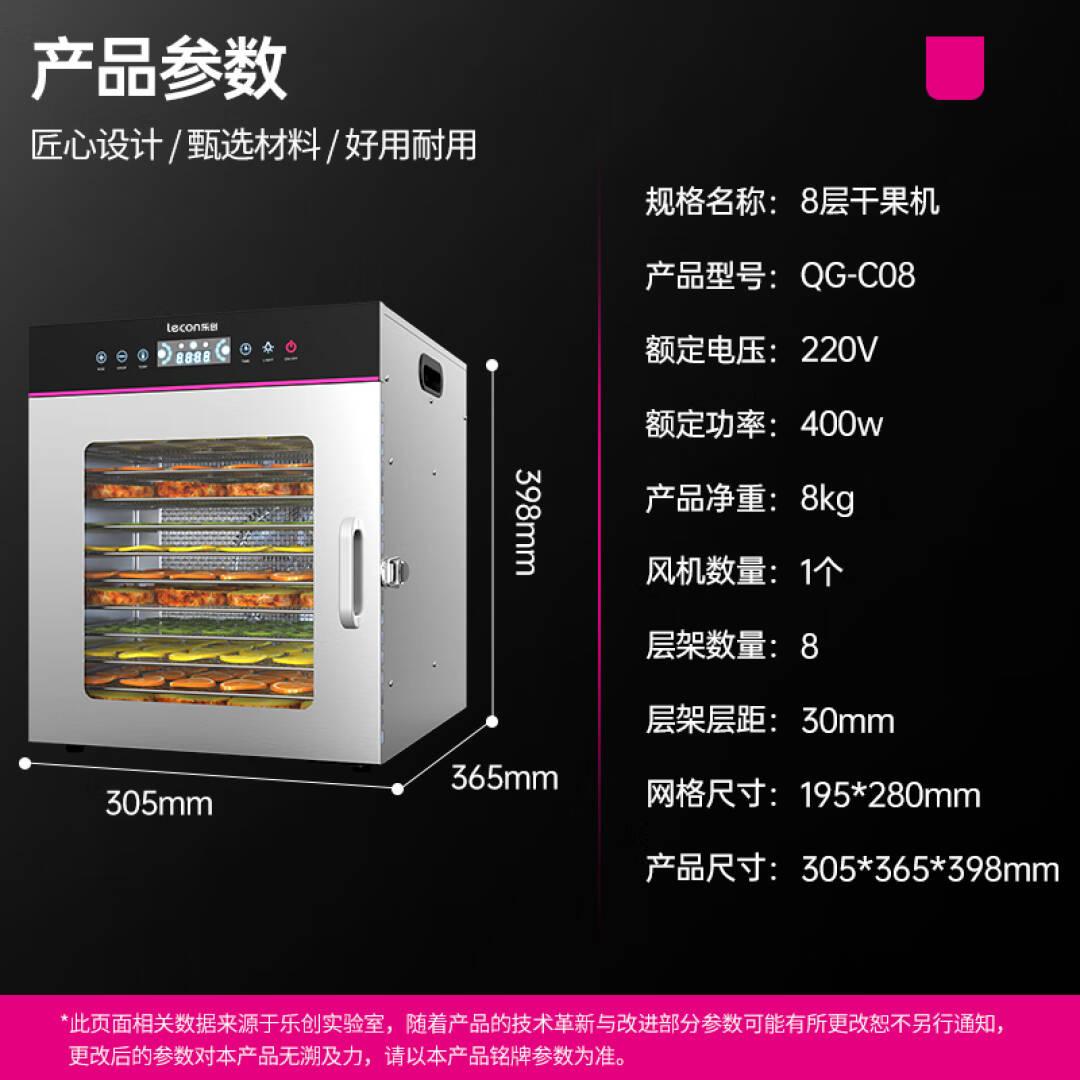 乐创(lecon)食品烘干机水果干果机商用风干机不锈钢脱水机药材肉干蔬菜 果干肉干干果机QG-C08