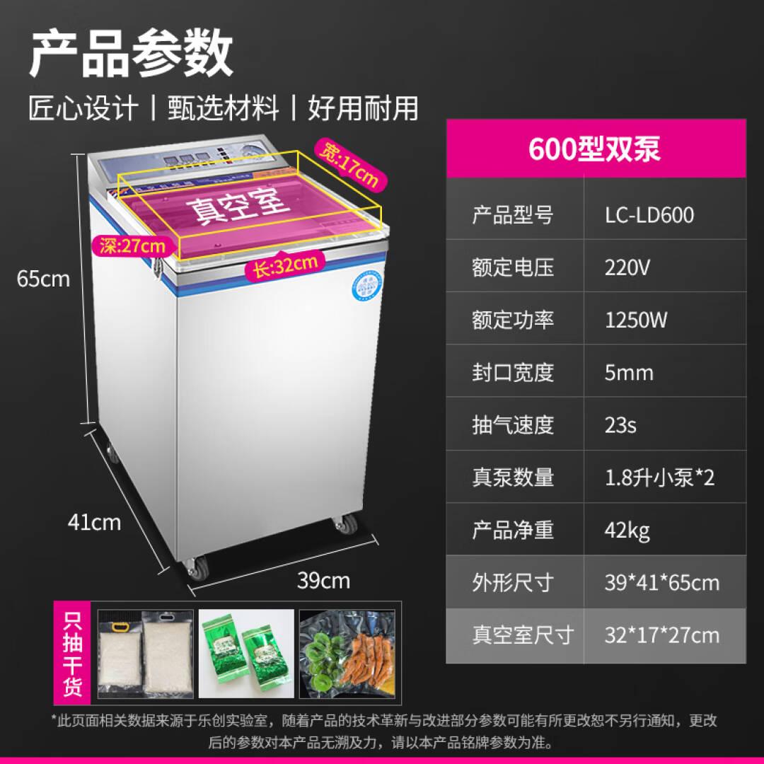 乐创(lecon)抽真空封口机商用全自动大型食品包装机保鲜干货茶叶杂货 预制菜封口 600型小泵双泵 LC-LD600