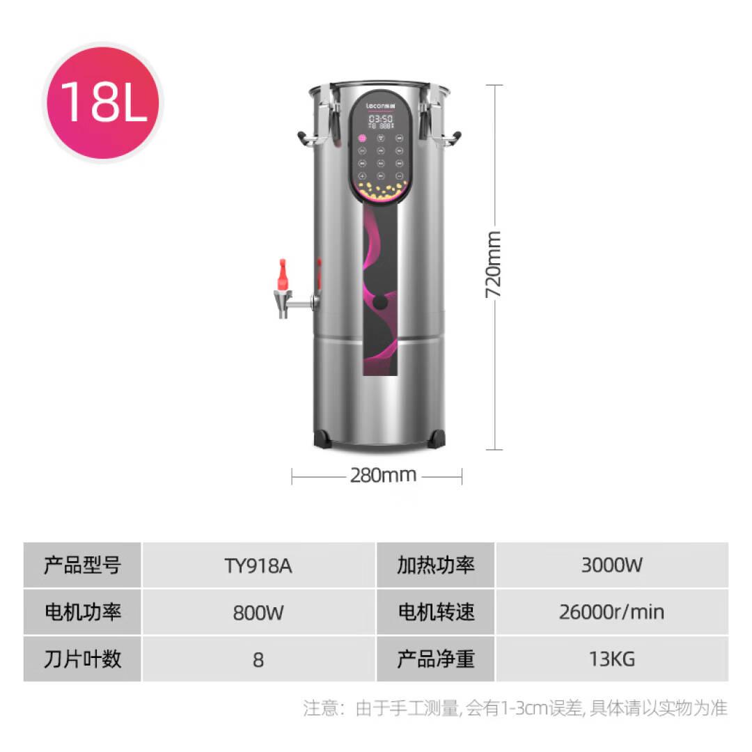 乐创(lecon)豆浆机商用全自动免过滤智能面板加热预约现磨早餐食堂酒店饭堂专用磨浆机 18L TY918