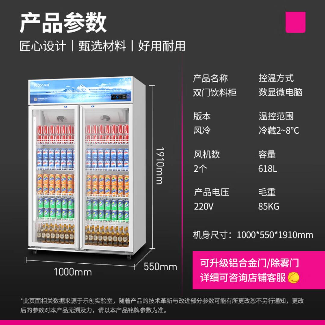 乐创(lecon)双开门展示柜冷藏柜保鲜饮料柜超市便利店餐厅饭店冰箱立式冷柜LC-ZSG02 618F/B1