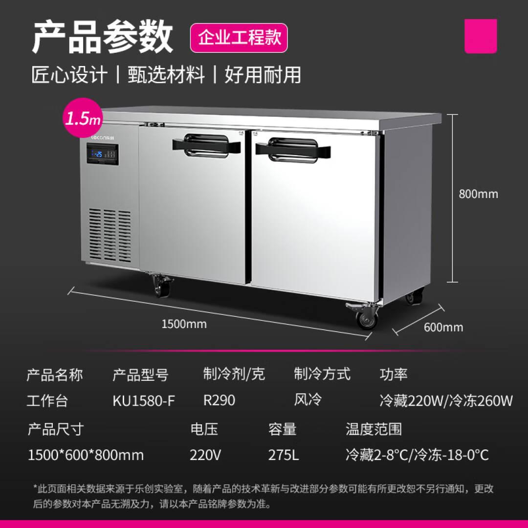 乐创(lecon)冷藏工作台保鲜操作台冰柜 卧式冰柜厨房高端风冷冰箱1.5*0.6米全冷冻 KU1580-F