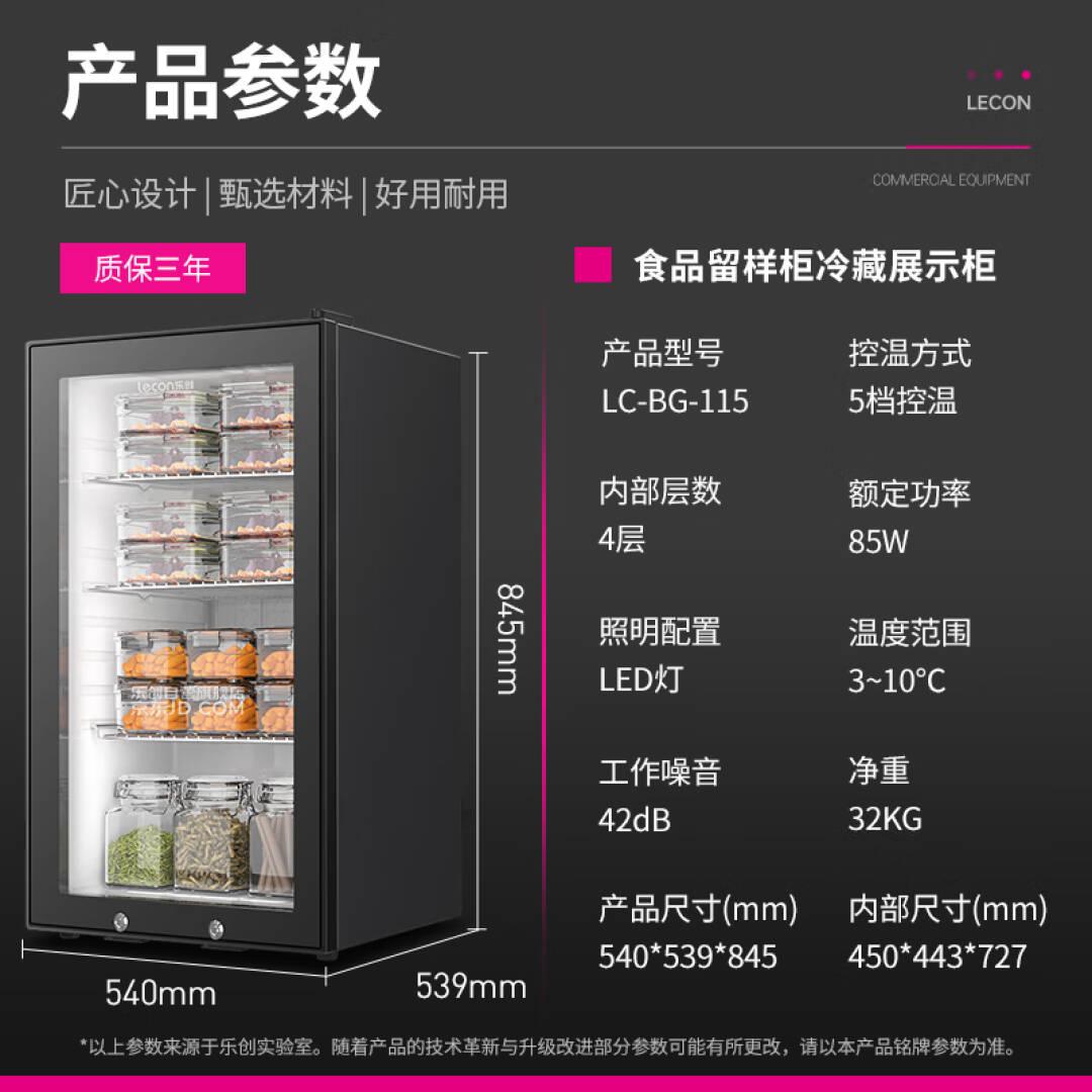 乐创(lecon)食品留样柜冷藏展示柜小型冰箱幼儿园食堂用学校酒店水果保鲜饮料带锁LC-BG-115