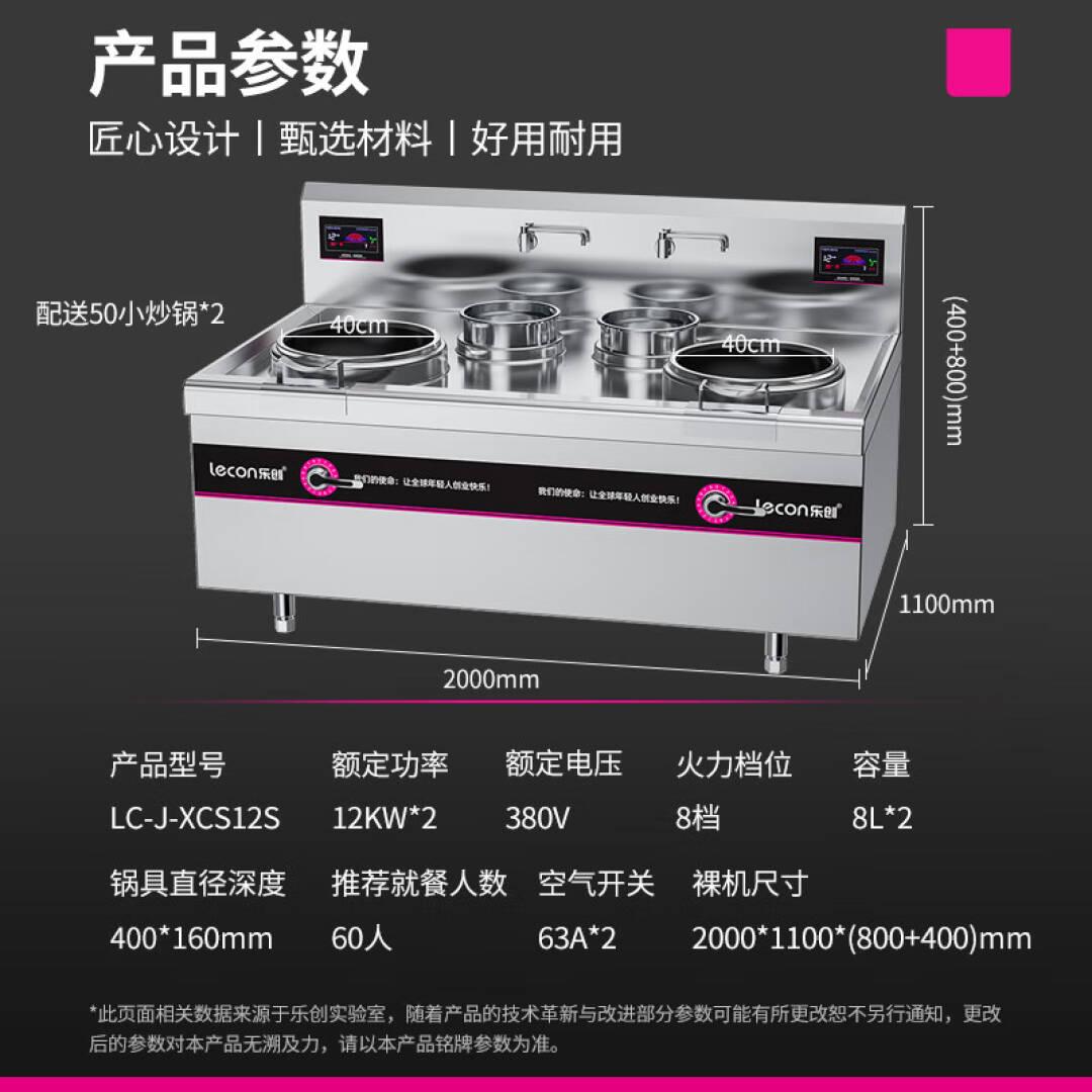 乐创(lecon)商用双头双尾小炒灶 12KW*2酒店饭堂企业电磁灶 LC-J-XCS12S【一价无忧】 单位:台