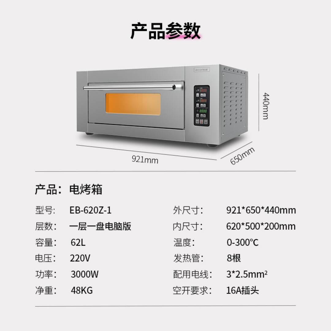 乐创(lecon)烤箱商用电烤箱大型大容量电烤炉蛋糕面包月饼披萨烤箱焗炉一层一盘220V EB-620Z-1