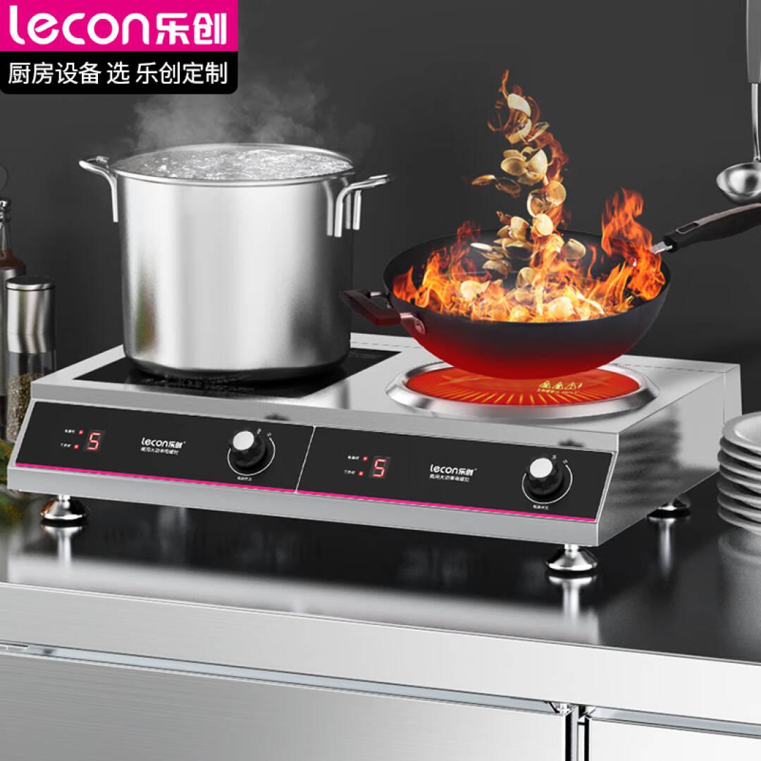 乐创 lecon 商用电磁炉5000w双头平凹面爆炒多眼大功率电磁灶HT-50PA 单位:台
