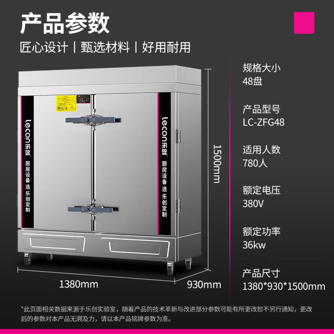 乐创(lecon)蒸饭柜商用 双门电热蒸箱蒸饭车学校食堂餐饮大容量蒸柜蒸包炉蒸饭箱 标准款48盘380v LC-ZFG48