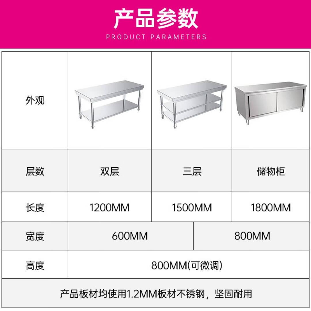 乐创(lecon)商用工作台不锈钢双层操作台厨房不锈钢打荷台1.5*0.6米304不锈钢双层款 LC-CZT12【一价无忧】
