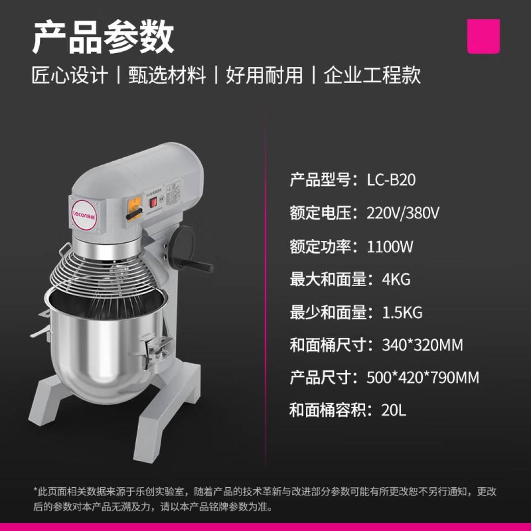乐创(lecon)搅拌机商用打蛋器多功能厨师机和面机蛋糕面包打发打奶油20L LC-B20