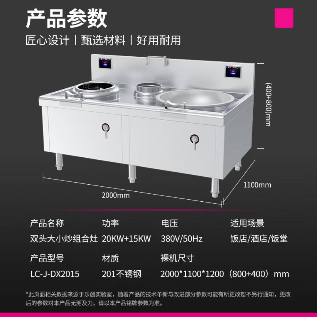 乐创(lecon)商用大炒+小炒组合灶 (20KW+15KW)大功率炒菜电磁灶 201不锈钢 LC-J-DX2015 单位:台
