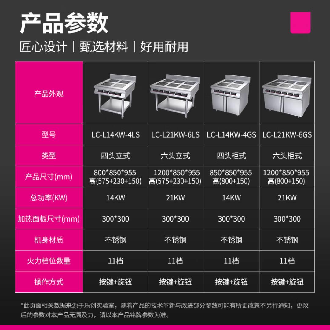 乐创(lecon)商用电磁炉煲仔炉多头灶四头六头花甲锡纸米线麻辣烫四眼六眼 四头平面层架式LC-L14KW-4LS