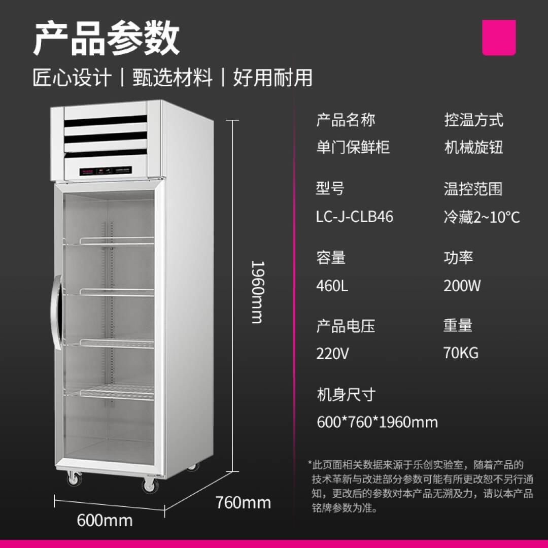 乐创(lecon)商用单门展示柜 立式保鲜陈列柜460L工程豪华款全冷藏 LC-J-CLB46【一价无忧】 单位:台