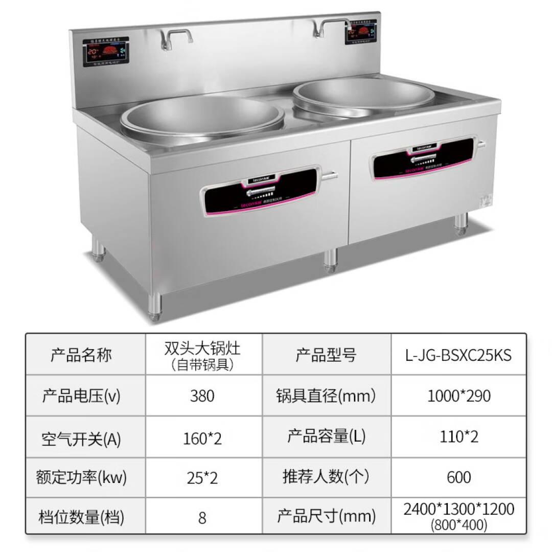 乐创(lecon)商用电磁双头大锅灶 锅径1000 25KW*2大功率酒店饭堂电磁灶 L-JG-BSXC25KS【一价无忧】
