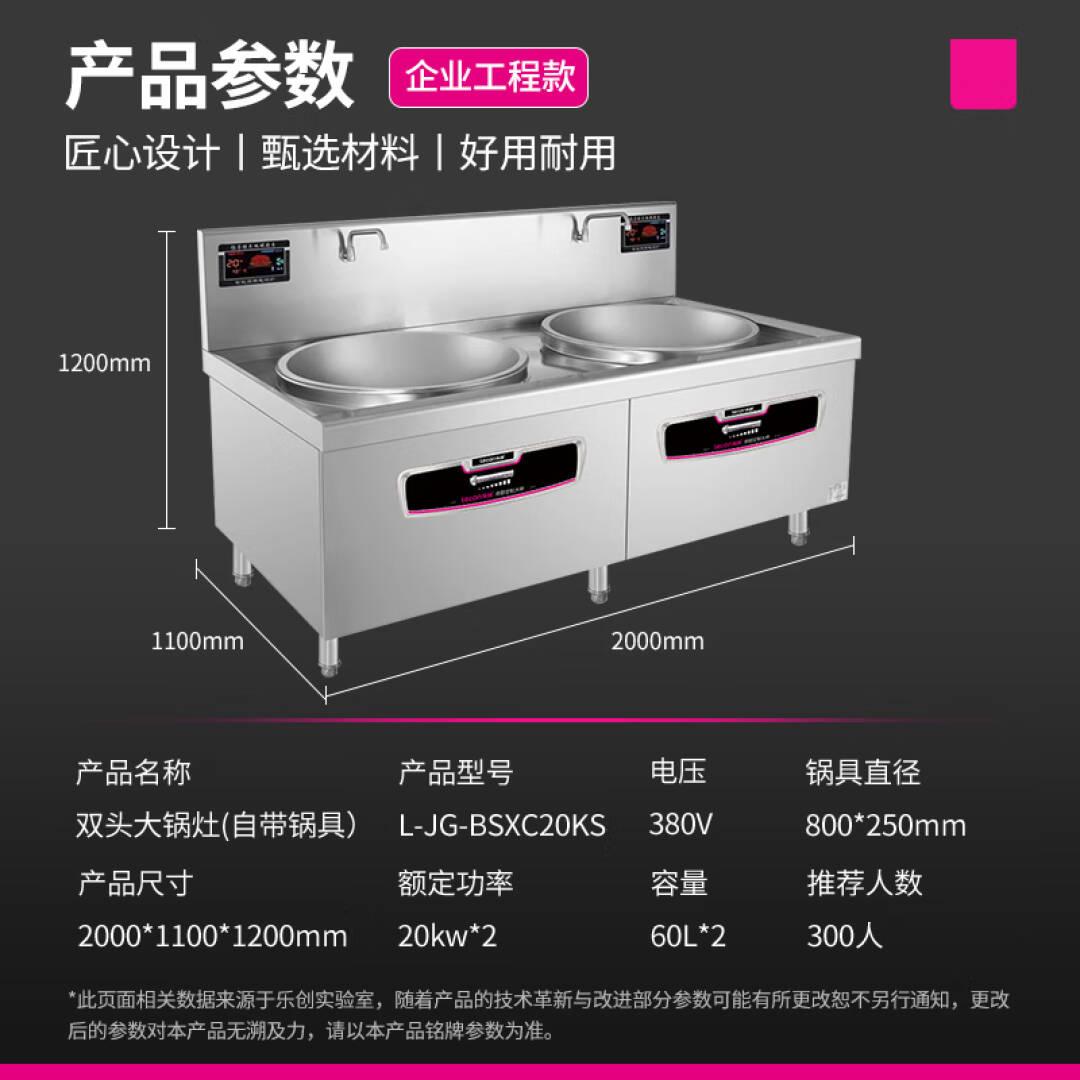 乐创(lecon)商用电磁双头大锅灶 锅径800 20KW*2大功率酒店饭堂电磁灶 L-JG-BSXC20KS【一价无忧】