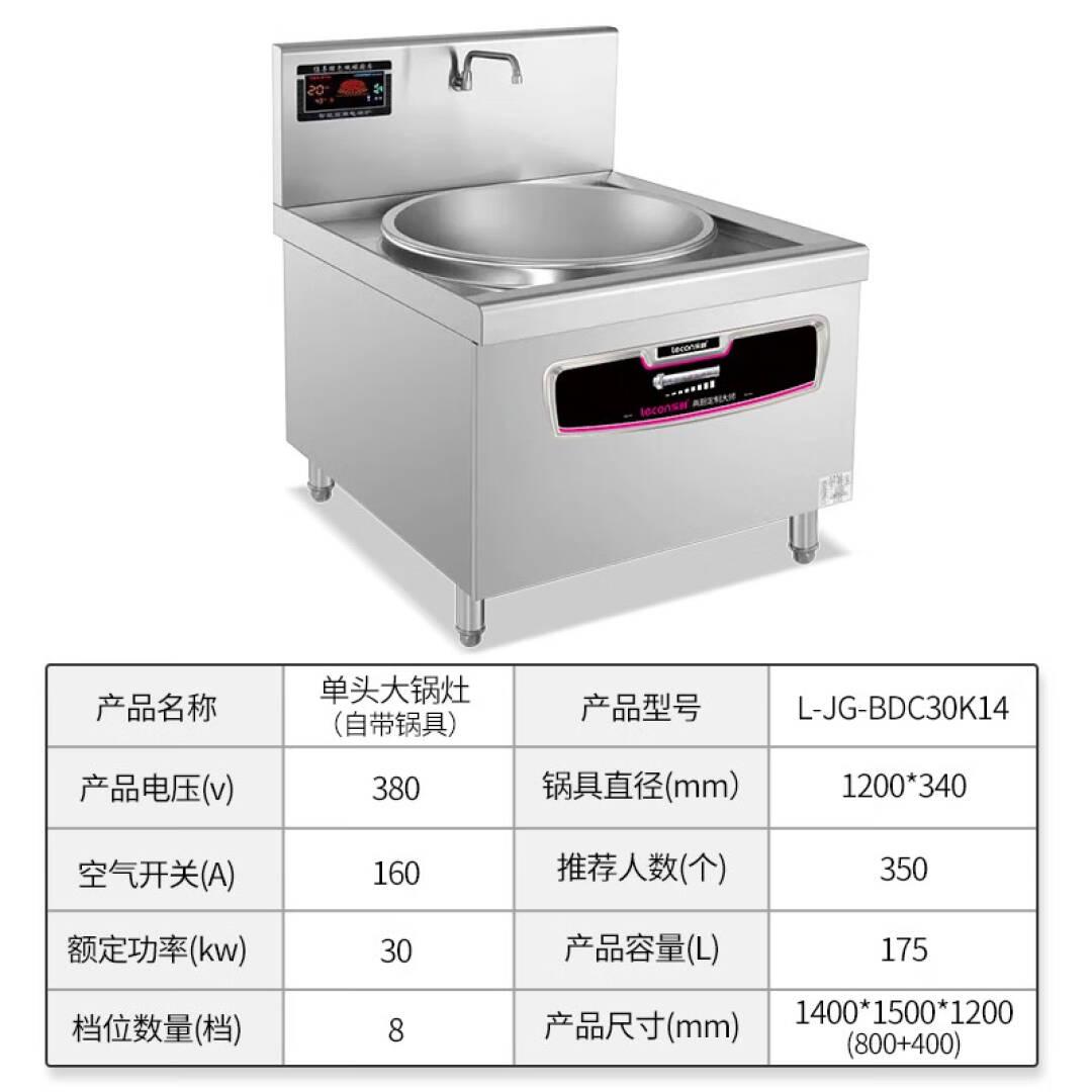 乐创(lecon)商用电磁单头大锅灶 锅径1200 30KW大功率酒店饭堂电磁灶 L-JG-BDC30K14【一价无忧】