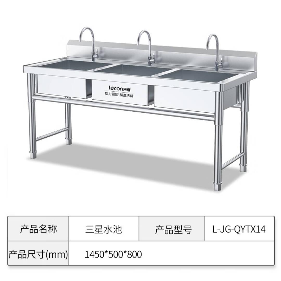 乐创(lecon)商用三星水池 厨房不锈钢水池 三星201不锈钢 1450*500*800mm L-JG-QYTX14【一价无忧】