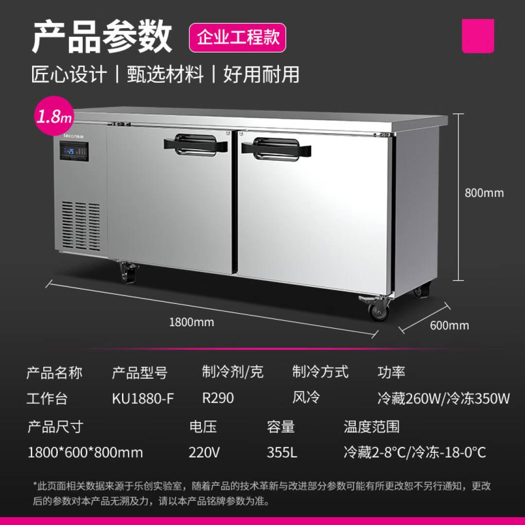 乐创(lecon)冷藏工作台保鲜操作台冰柜 卧式冰柜厨房高端风冷冰箱1.8*0.6米全冷冻 KU1880-F
