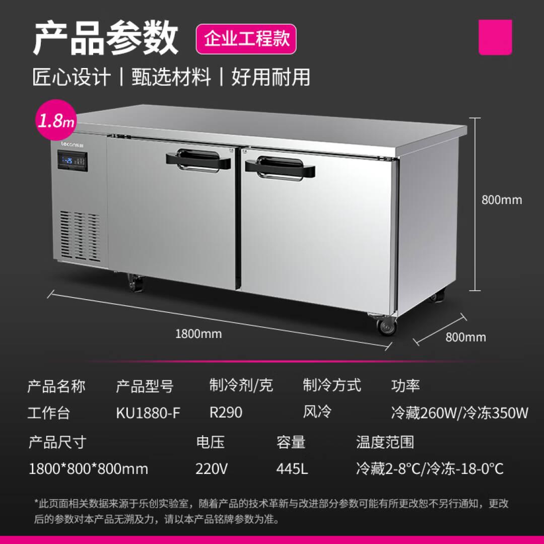 乐创(lecon)冷藏工作台保鲜操作台冰柜 卧式冰柜厨房高端风冷冰箱1.8*0.8米全冷冻 KU1880-F