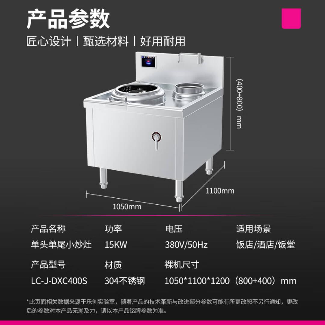 乐创(lecon)商用单头单尾小炒灶 15KW食堂炒菜电磁灶 304不锈钢工程款 LC-J-DXC400S【一价无忧】 单位:台