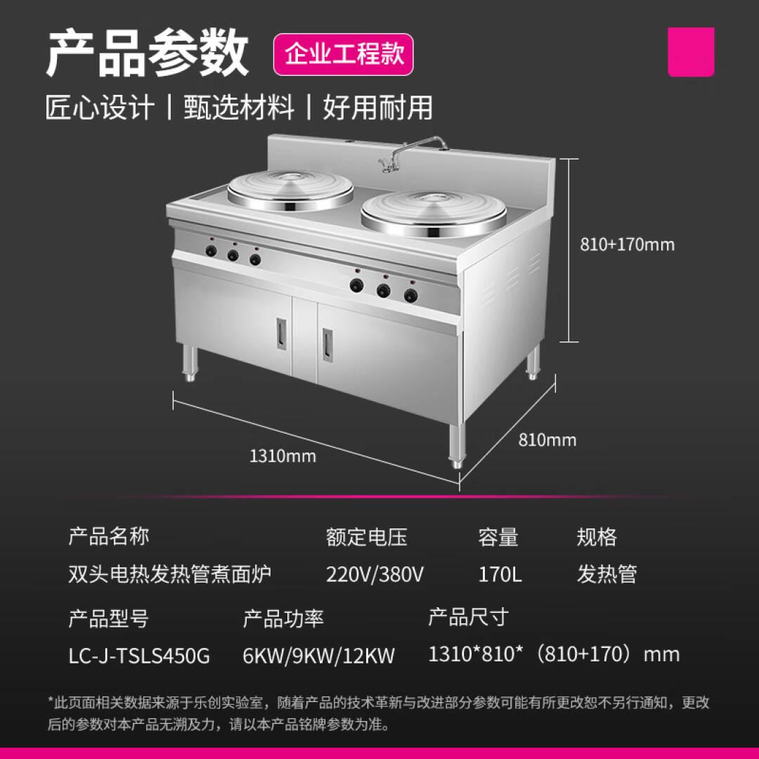 乐创(lecon)商用煮面炉 多功能不锈钢台式双头煮面炉(发热管)LC-J-TSLS450G【一价无忧】 单位:台