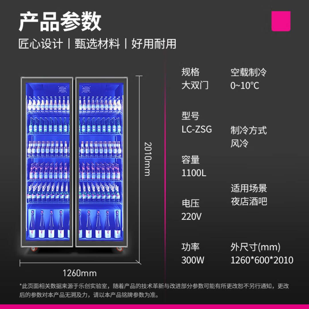 乐创(lecon)啤酒柜展示柜饮料柜冷藏保鲜柜便利店超市冰箱酒吧夜店大容量回弹门风冷大双门 LC-ZSG