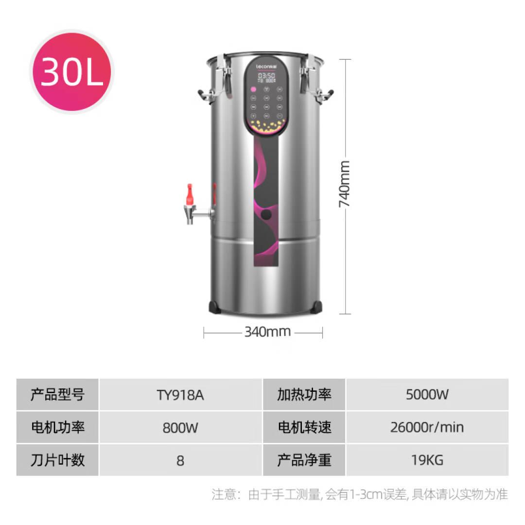 乐创(lecon)豆浆机商用全自动免过滤智能面板加热预约现磨早餐食堂酒店饭堂专用磨浆机 30L TY918