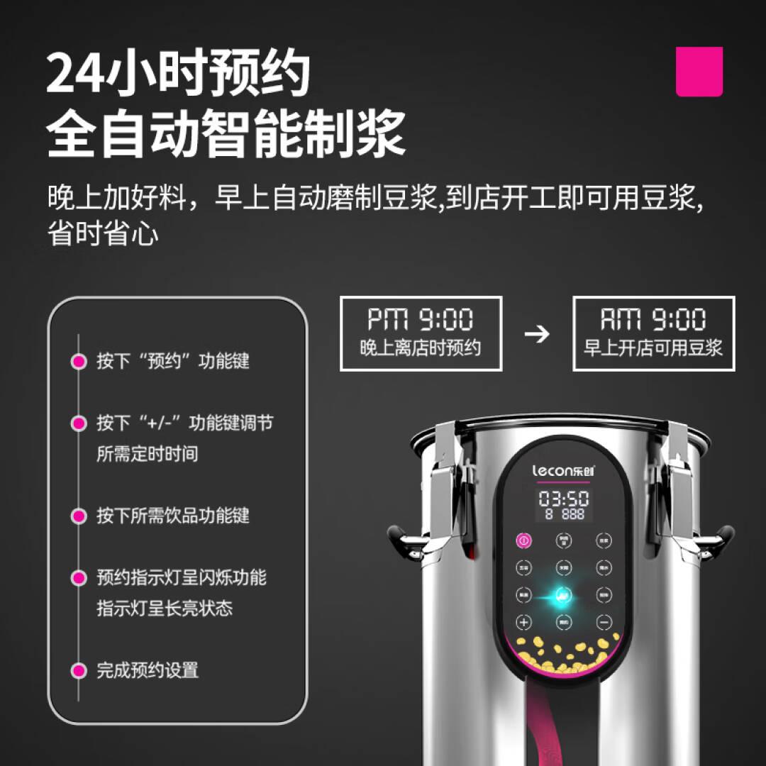乐创(lecon)豆浆机商用全自动免过滤智能面板加热预约现磨早餐食堂酒店饭堂专用磨浆机 35L TY918