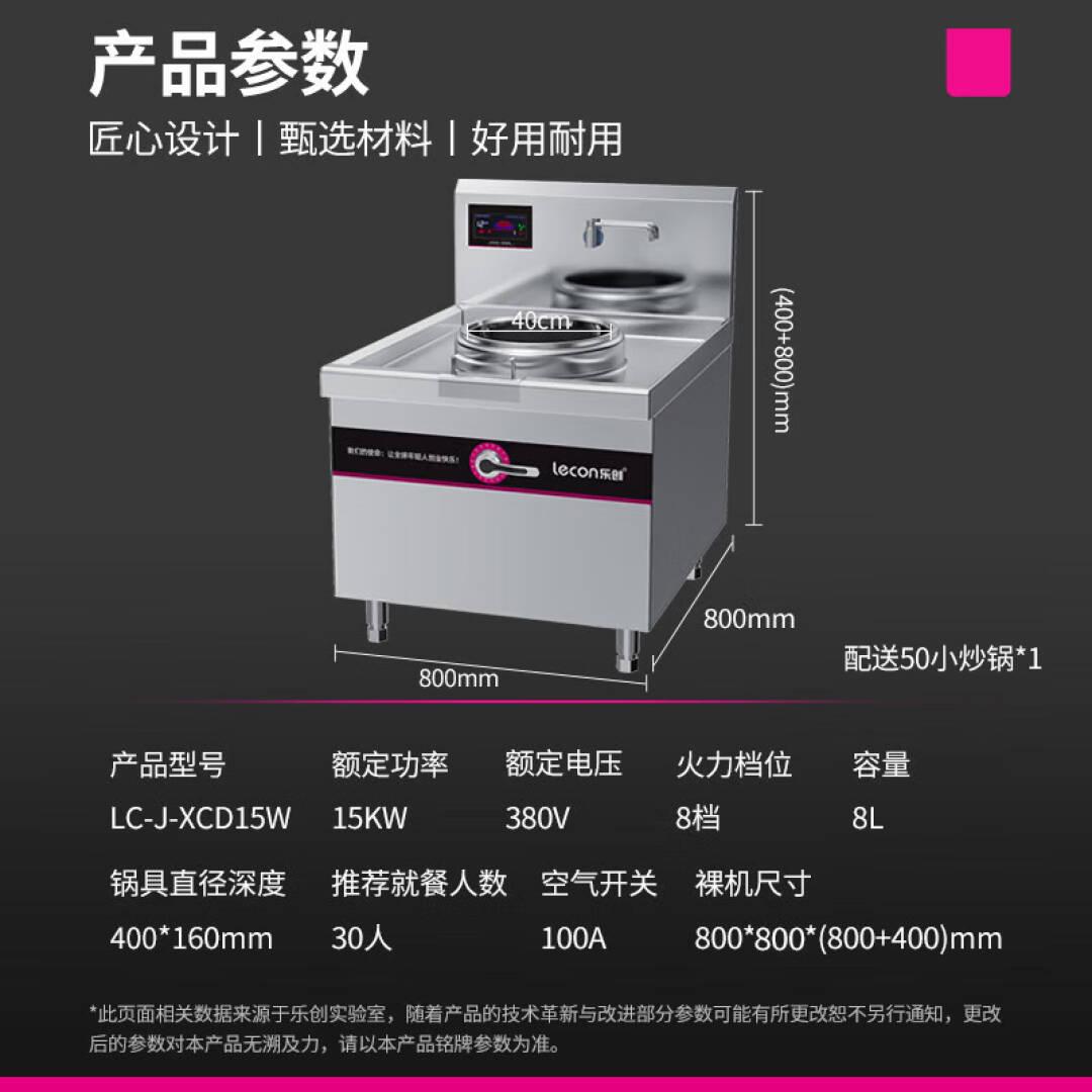 乐创(lecon)商用单头无尾小炒灶 15KW酒店饭堂企业电磁灶 LC-J-XCD15W【一价无忧】 单位:台