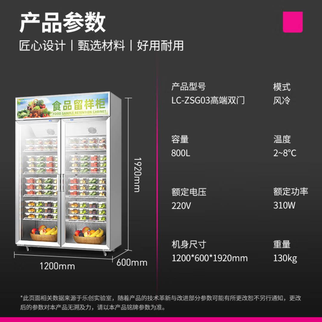 乐创(lecon)食品留样柜幼儿园食堂用学校公司冷藏柜蔬菜保鲜铝合金门双门800升带锁LC-ZSG03