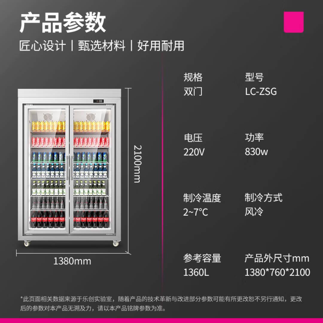 乐创(lecon)饮料柜展示柜冷藏保鲜柜商用啤酒柜超市便利店立式冰箱冰柜冷柜分体机风冷双门平头款LC-ZSG
