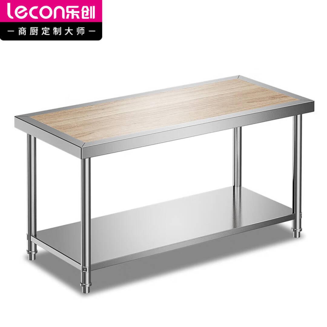 乐创(lecon)木案工作台 饭店酒店厨房打荷台商用 切菜收纳双层操作台1.2*0.8*0.8米 LC-2CZT128T1