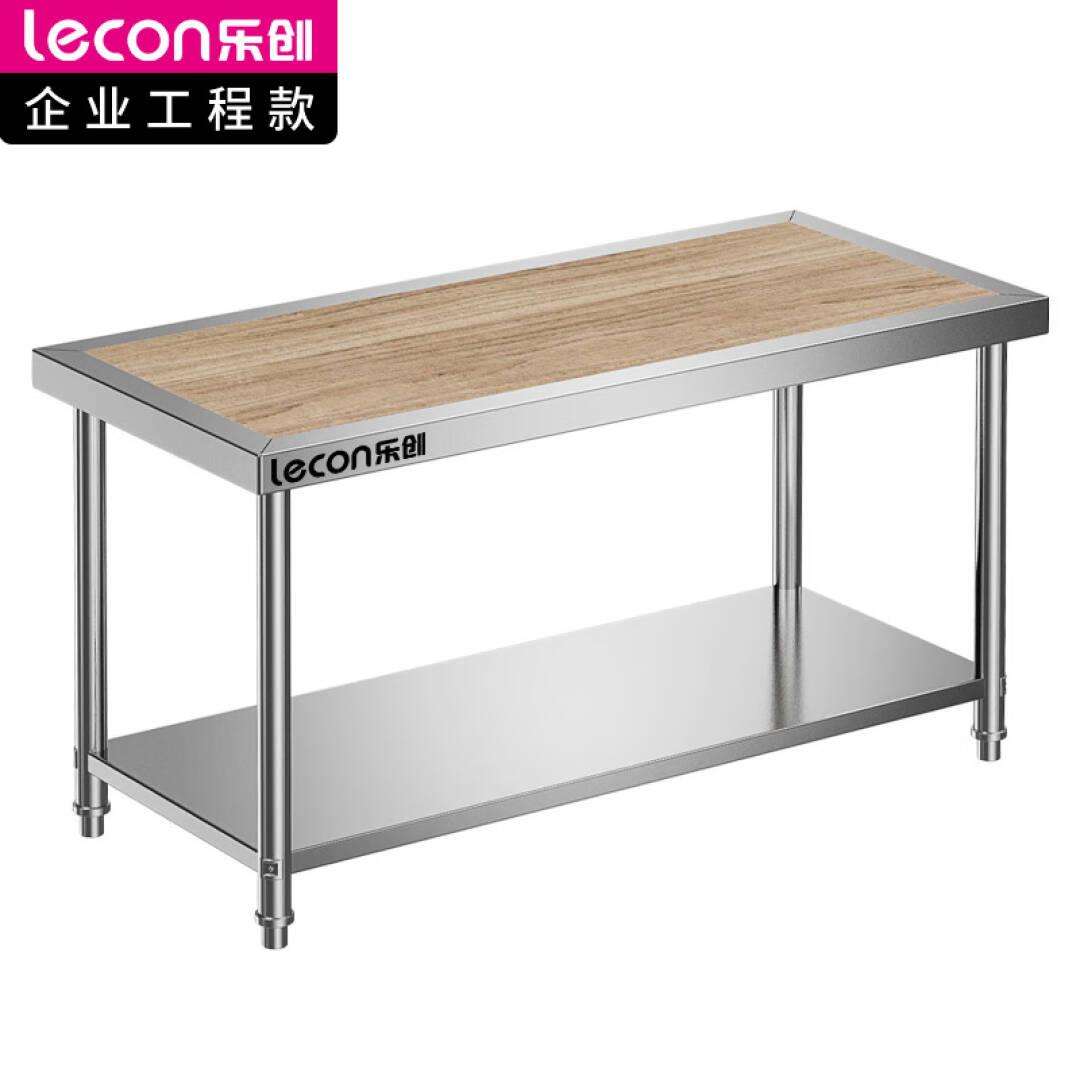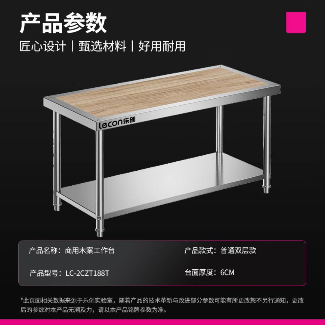 乐创(lecon)木案工作台 饭店酒店厨房打荷台商用 切菜收纳双层操作台1.8*0.8*0.8米 LC-2CZT188T
