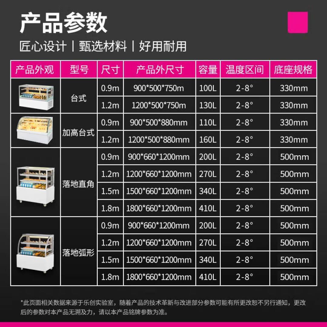 乐创(lecon)蛋糕柜展示柜水果饮料保鲜冷藏风冷无霜除雾玻璃0.9米弧形落地前开门ZSG-LYQ09