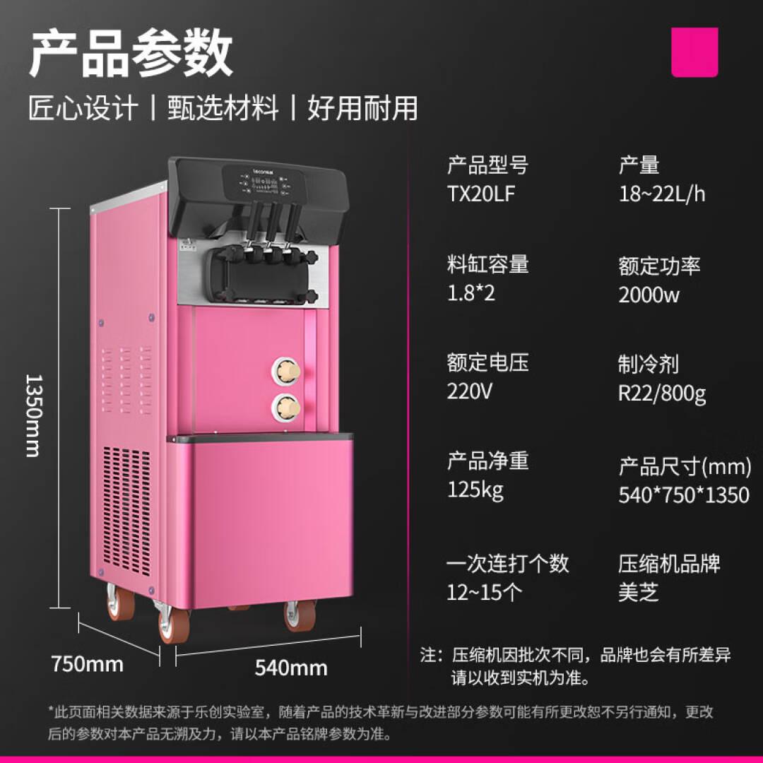 乐创lecon冰淇淋机商用冰激凌机雪糕机全自动摆摊立式甜筒圣代粉色冰淇淋机商用甜筒机圣代机 TX20LF