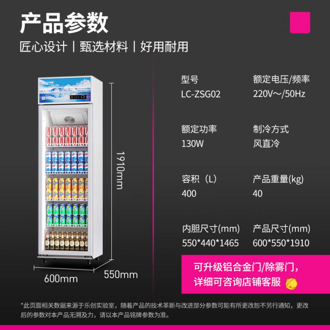 乐创(lecon)展示柜冷藏饮料柜商用保鲜柜超市便利店立式冰柜士多冰箱LC-ZSG 01