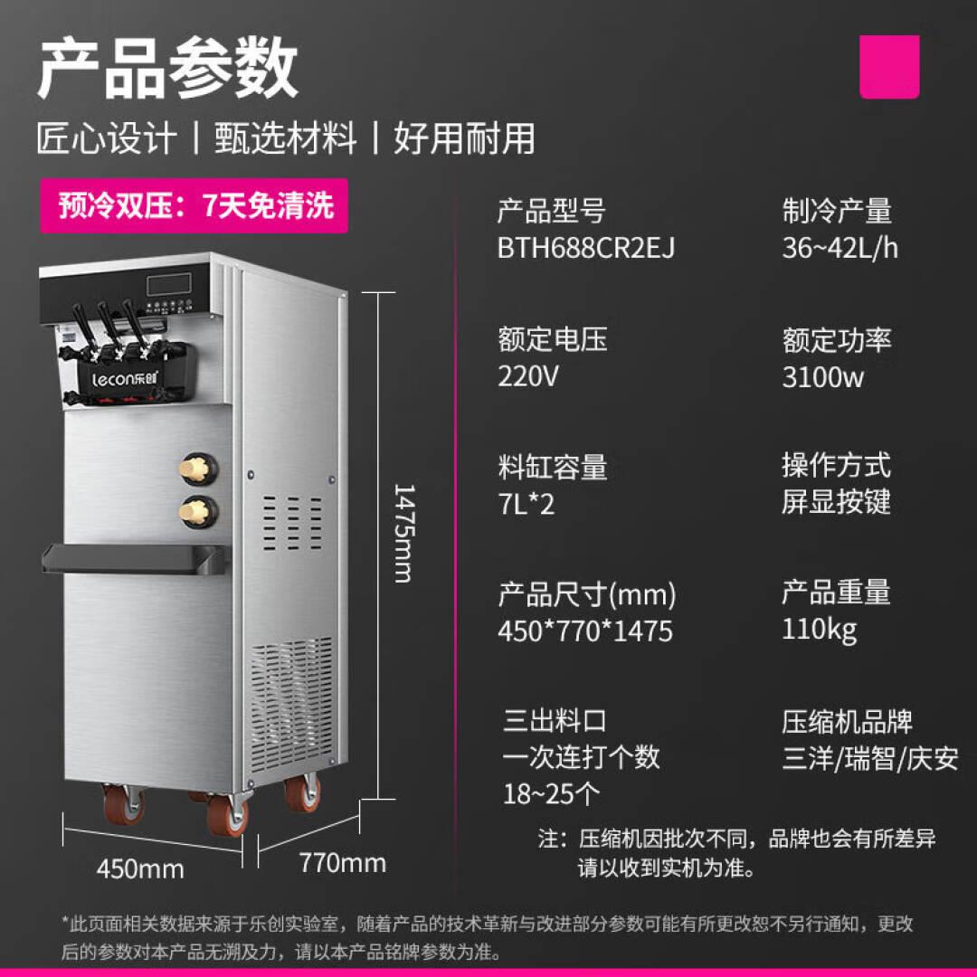 乐创(lecon)冰淇淋机商用全自动雪糕机立式甜筒机型圣代机大产量预冷保鲜双压7天免清洗 BTH688CR2EJ