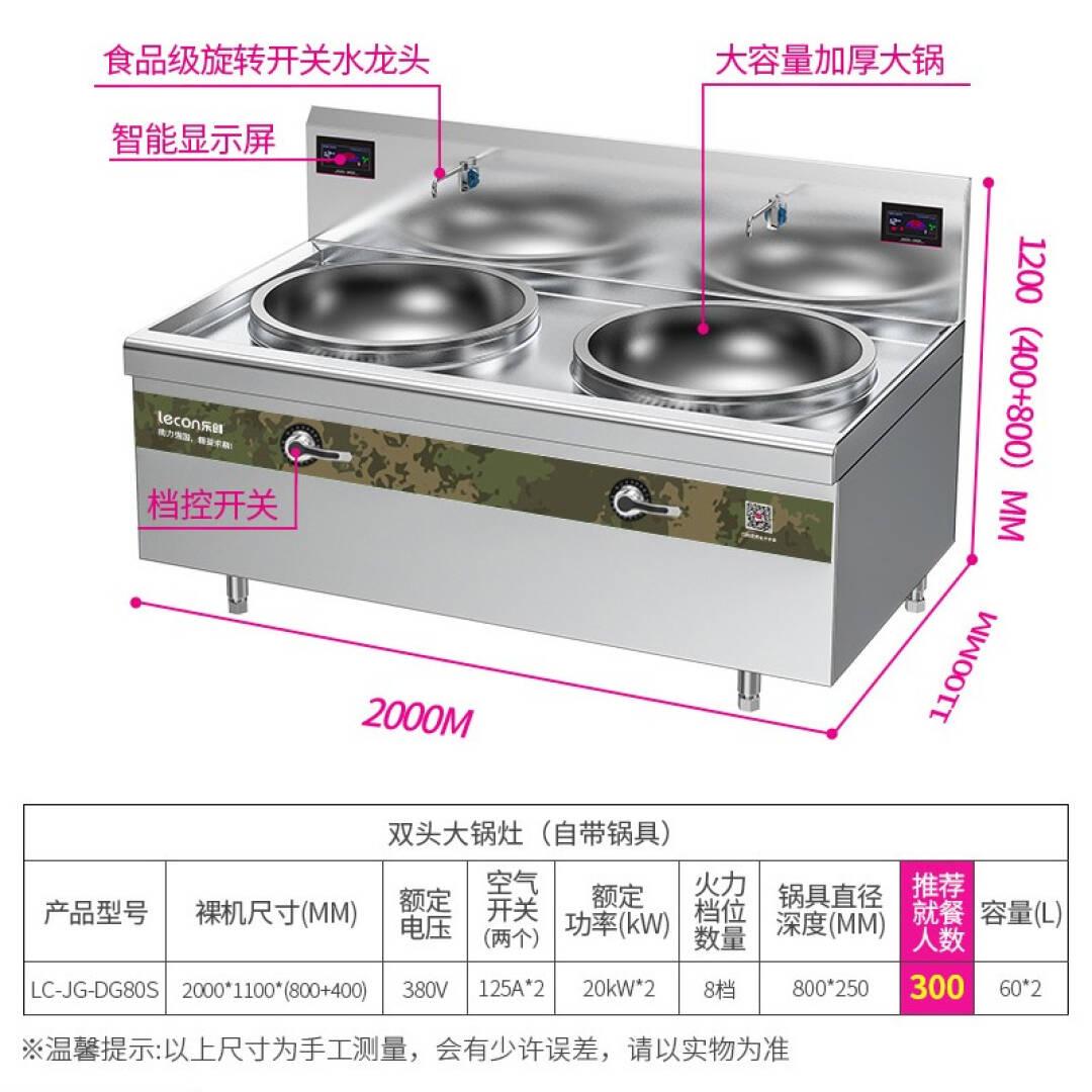 乐创(lecon)商用双头大锅灶 锅径800 酒店饭堂企业电磁灶 LC-JG-DG80S【一价无忧】