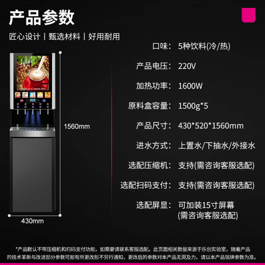 乐创(lecon)速溶咖啡机商用饮料机全自动多功能果汁奶茶咖啡豆浆一体机 5冷5热+冷热水(立式内置水泵)