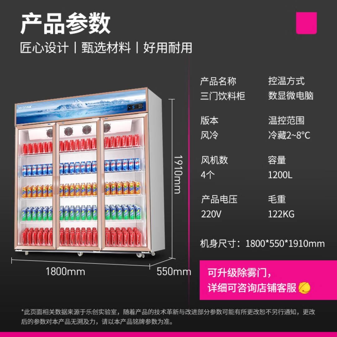 乐创(lecon)三门展示柜冷藏保鲜柜便利店饮料柜超市立式冰柜啤酒柜 1200升大容量风冷 LC-ZSG03