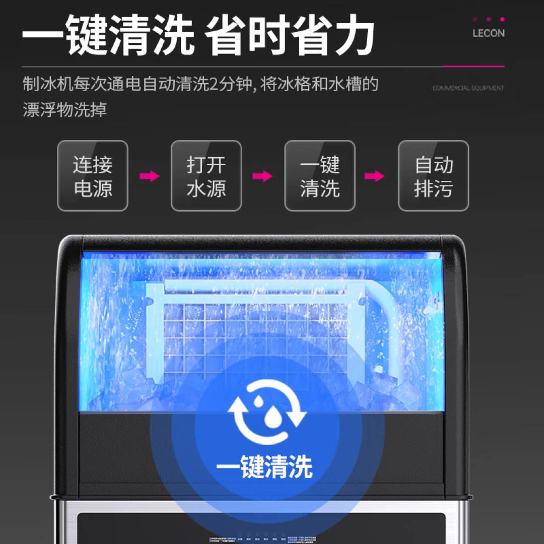 乐创(lecon)制冰机商用奶茶店大型冰块机方冰50大冰格商用制冰机 50冰格 日产量36KG 自来水/桶装水 XB-135G