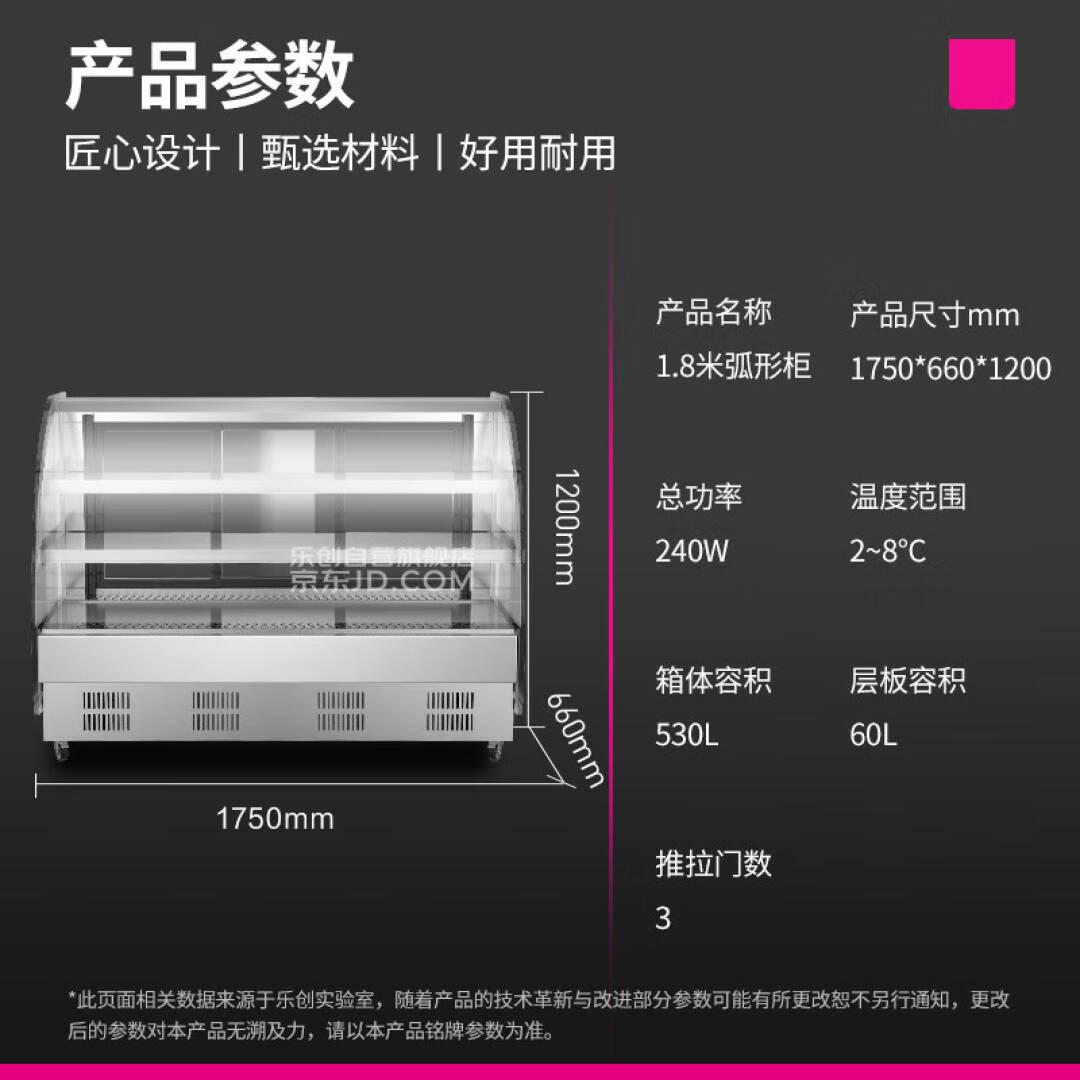 乐创(lecon)凉菜展示柜卤菜冷藏柜鸭脖烧烤串串点菜柜饮料水果保鲜柜企业采购 弧形后开门LC-LCGH1.8