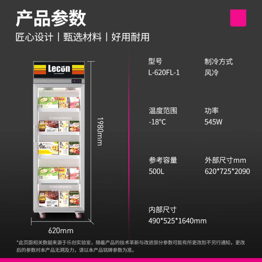 > 乐创(lecon)超市冷冻展示柜商用立式冻品速冻饺子雪糕柜L-620FL-1