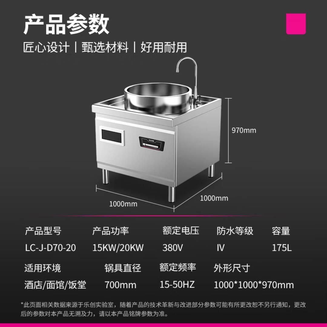 乐创(lecon)商用大锅灶大功率煮面炉商用汤炉 锅径700 20KW电磁灶 不锈钢工程款 LC-J-D70-20